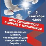 3 сентября в 12:00 состоится памятное мероприятие, посвященное Дню солидарности в борьбе с терроризмом.Этот день – символ единства нашего государства и общества, день памяти всех жертв трагических событий, день выражения солидарности и почтения памяти погибших.Приглашаем всех неравнодушных жителей присоединиться к нам, чтобы вместе почтить память жертв и укрепить наше единство. Где: г.Жуков , мемориальный комплекс Г.К.Жукова.