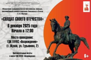 Друзья!️ Приглашаем всех желающих окунуться в атмосферу героизма и патриотизма на традиционном областном фестивале-конкурсе «Солдат своего Отечества». Мероприятие состоится 6 декабря в честь выдающегося полководца Георгия Константиновича Жукова, чьи победы стали символом мужества и стойкости нашего народа.